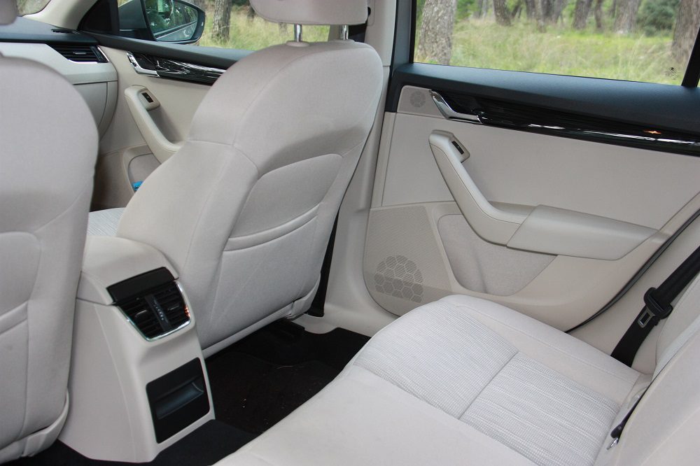 Οι χώροι-ειδικά για τα γόνατα θυμίζουν πραγματικά μια μεγάλη λιμουζίνα-και αν εξαιρέσει κανείς το ογκώδες τούνελ που θα ενοχλούσε τα πόδια του μεσαίου επιβάτη, το Skoda Octavia 1.6 TDI DSG θα ήταν ένα από εκείνα τα αυτοκίνητα που μπορούνε χωρίς πρόβλημα να μεταφέρει 3 ενήλικες στο πίσω κάθισμα.
