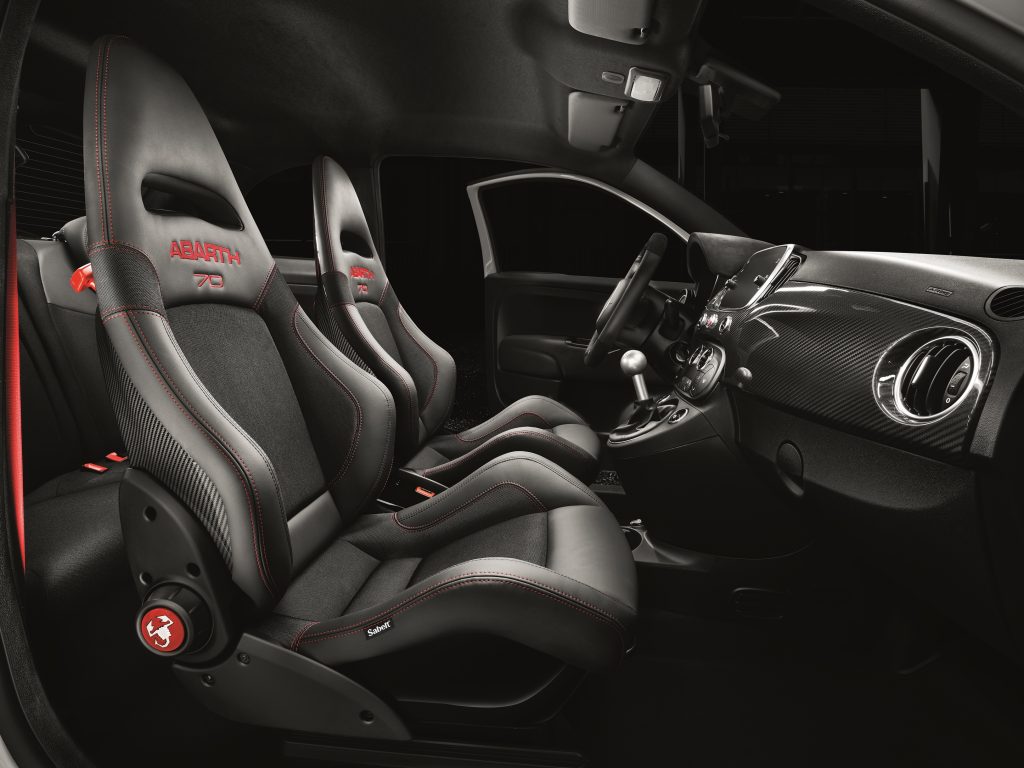 Τα αγωνιστικά καθίσματα της Sabelt με την carbon πλάτη συνοδεύουν σειρά στοιχείων που επίσης είναι επενδεδυμένα με ανθρακονήματα και Alcantara, όπως π.χ. το σπορ τιμόνι.