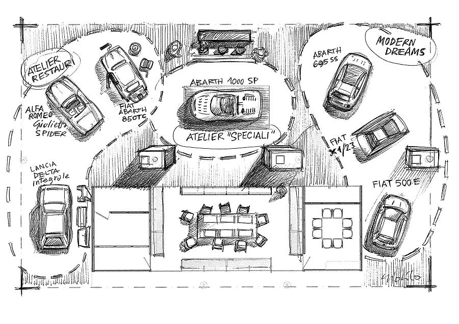 Το πρωτότυπο Fiat X1/23, το πρώτο πρωτότυπο ηλεκτρικό αυτοκίνητο, το νέο πρωτότυπο Abarth 1000 SP, μια σύγχρονη εκδοχή του ιστορικού Sport Prototipo του 1966 και το Fiat-Abarth 850 TC, το πρώτο Abarth με τα χαρακτηριστικά Turismo Competizione. Δίπλα τους μια Lancia Delta HF Integrale του 1991 και μια Alfa Romeo Giulietta Spider του 1960 θα ολοκληρώσουν μια ετερόκλητη, αλλά με κοινή καταγωγή οικογένεια αυτοκινήτων. Ποια όμως είναι η ιστορία που κρύβεται πίσω από αυτά τα ξεχωριστά μοντέλα;