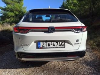 Τέλος το πίσω μέρος με το τύπου fastback πίσω παράθυρο και όμορφα LED φωτιστικά που ενώνονται με μια φωτεινή μπάρα, είναι το πιο «σικάτο» και όμορφο σημείο του Honda HR-V e:HEV και θα ικανοποιήσει όλα τα γούστα.